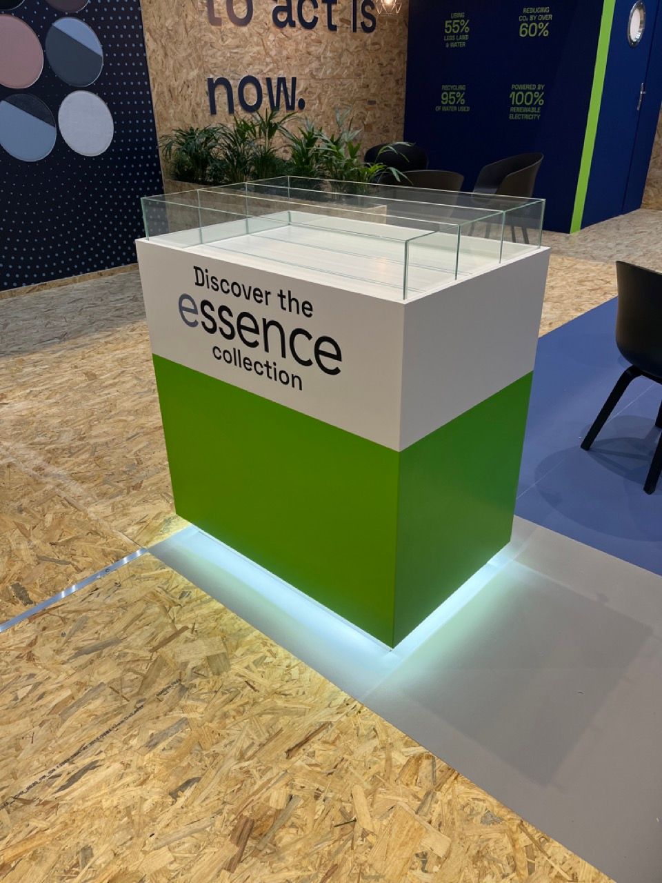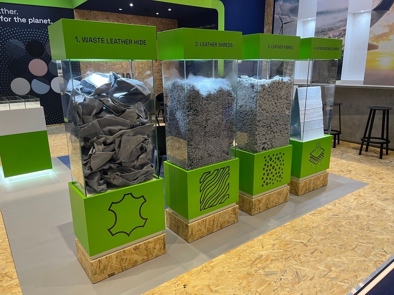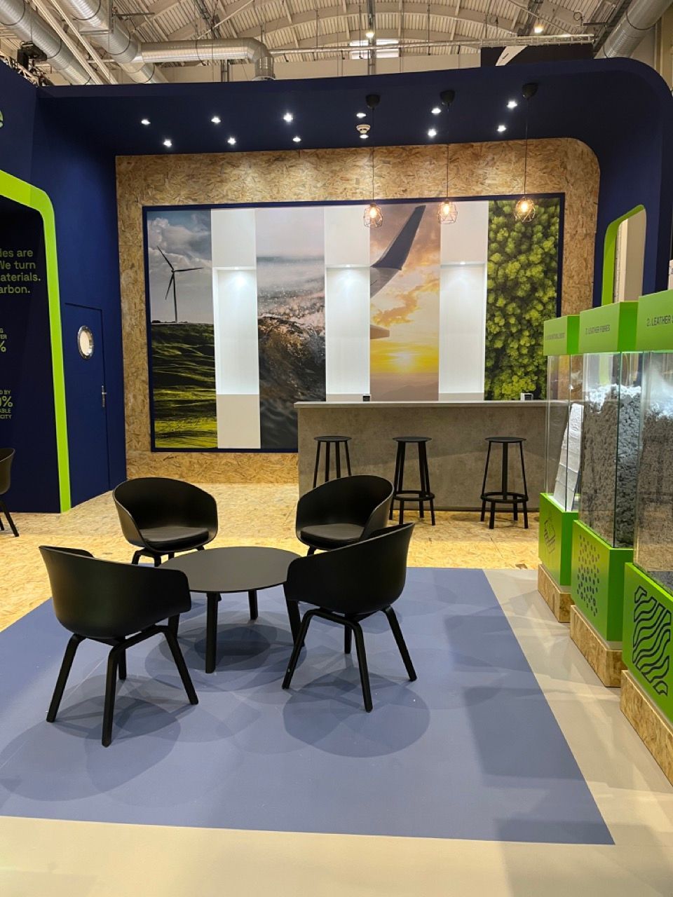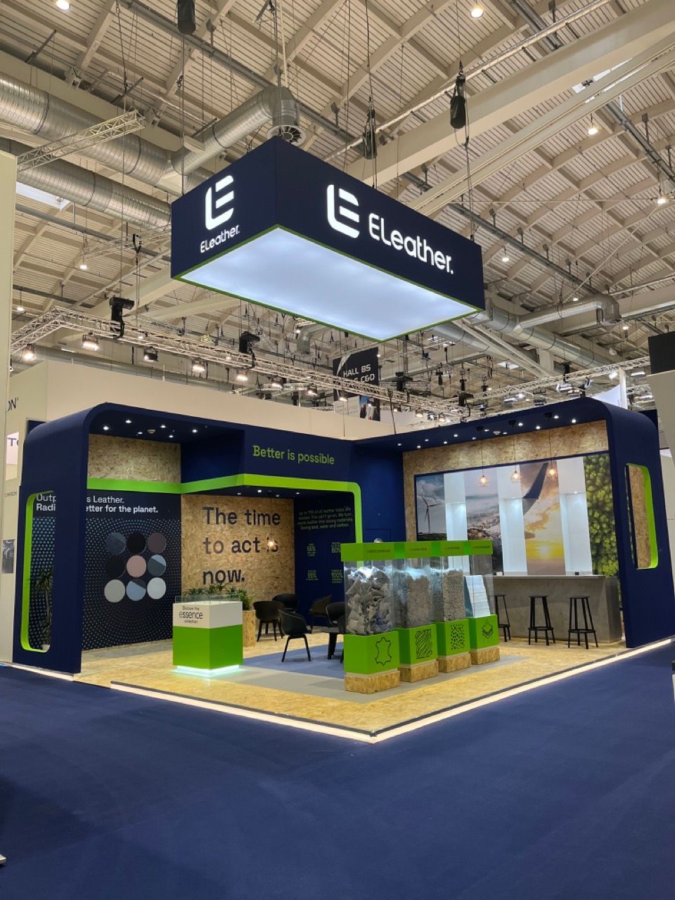 We focused our attention on creating a layout which would clearly showcase the journey within the manufacturing process. We then sourced reclaimed sterling board (chip board effect) to create a sustainable aesthetic and added bold messaging and statistics to reinforce E-Leathers credentials.
